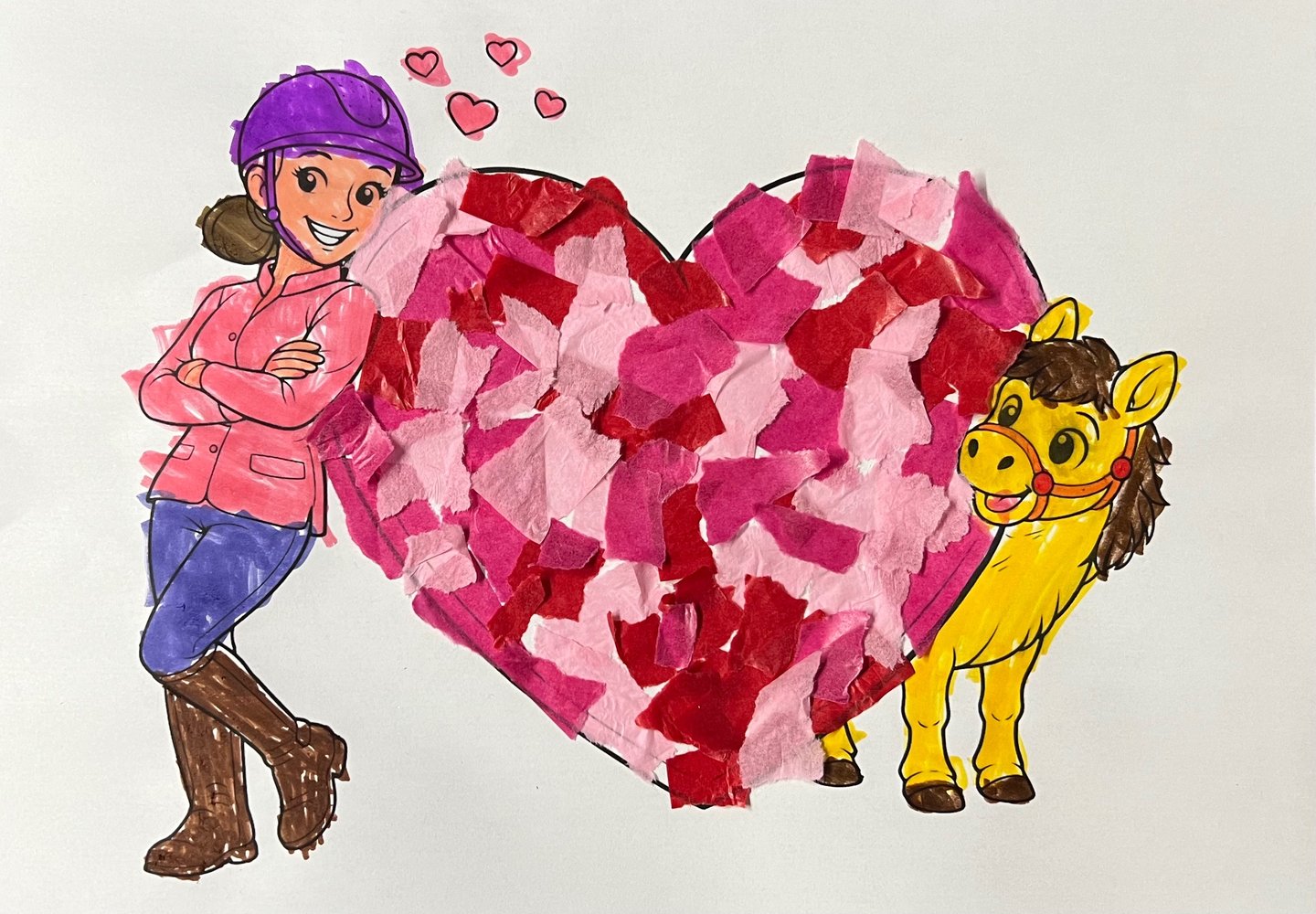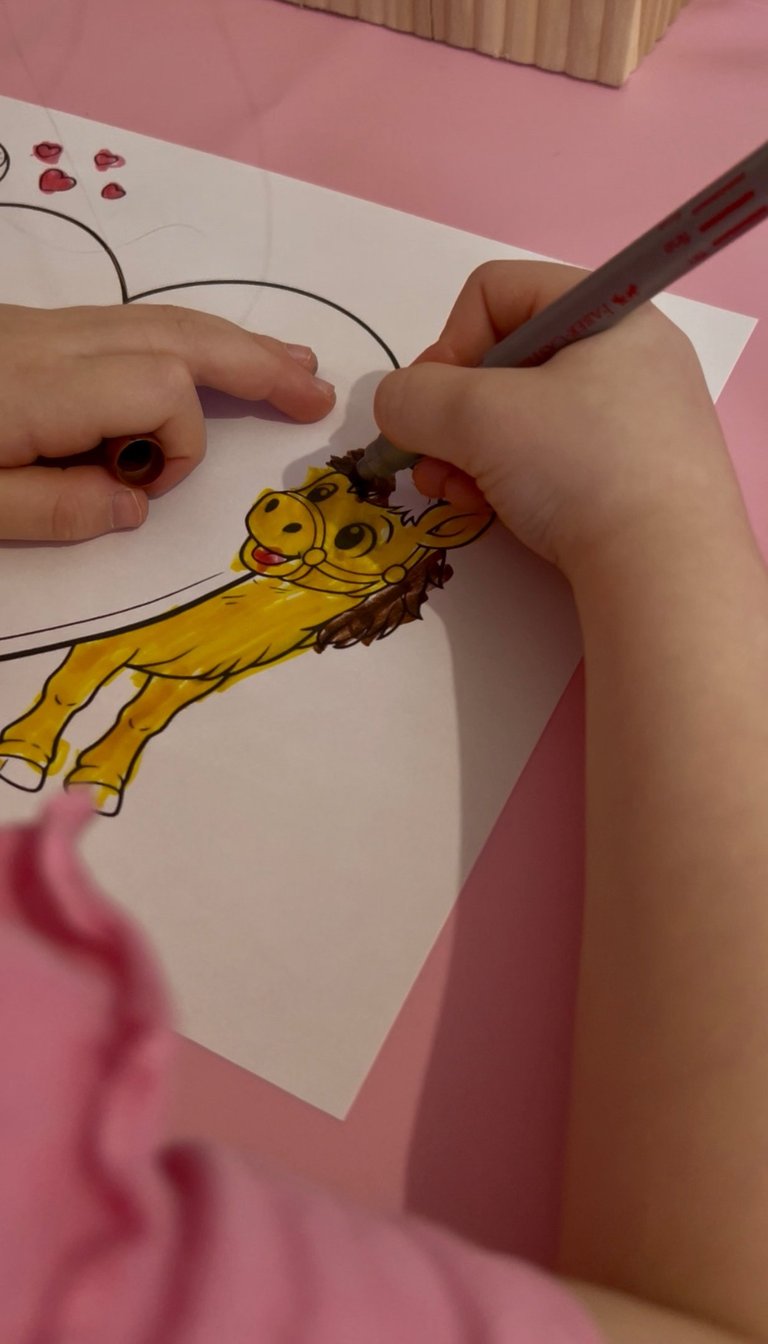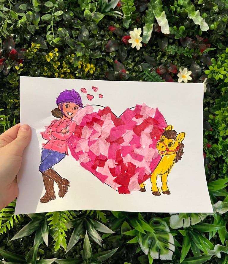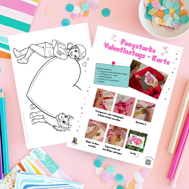 Valentinstagskarte basteln mit Pony - mit kostenlosem Ausmalbild & Bastelvorlage für Kinder