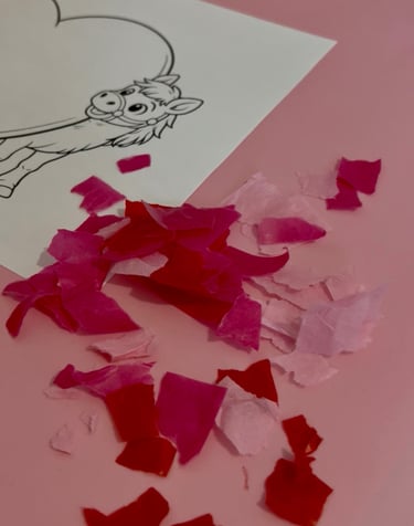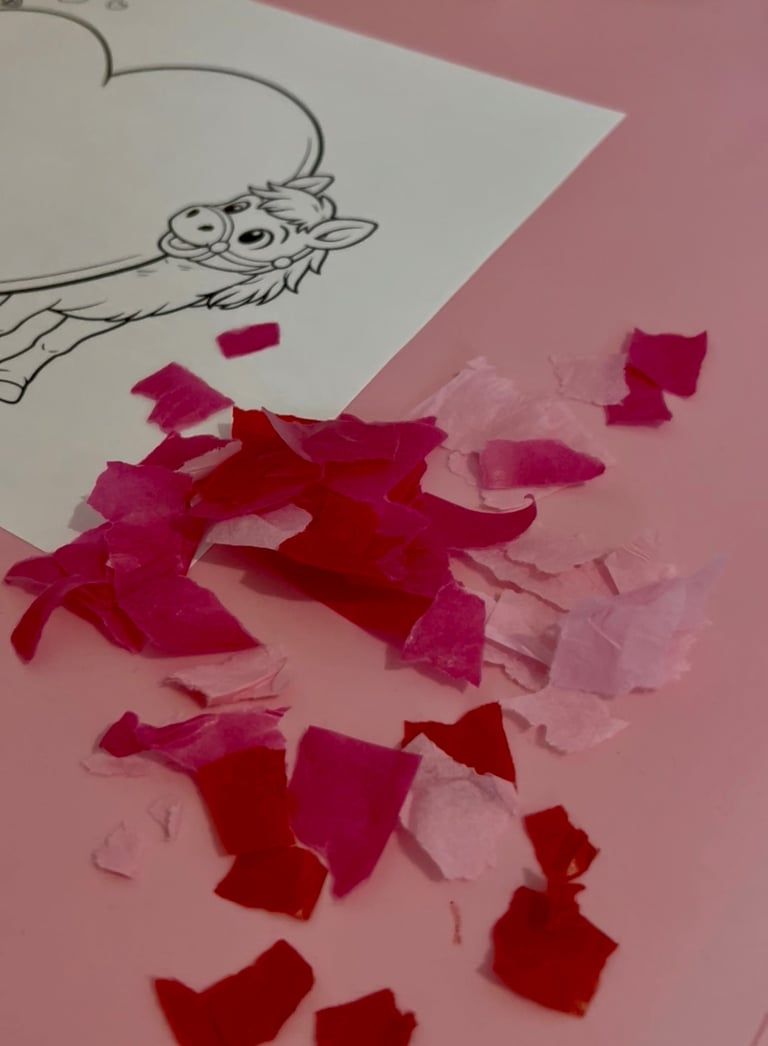 Reißt das Transparentpapier oder Seidenpapier in kleine Stücke. Das stärkt die Feinmotorik und macht Kindern besonders viel Spaß.